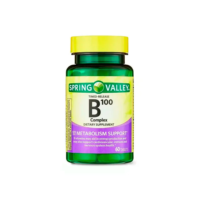 Nuestro suplemento dietético de liberación prolongada Spring Valley B-100 Complex Metabolism Support, en tabletas de liberación prolongada, está formulado para apoyar el metabolismo.