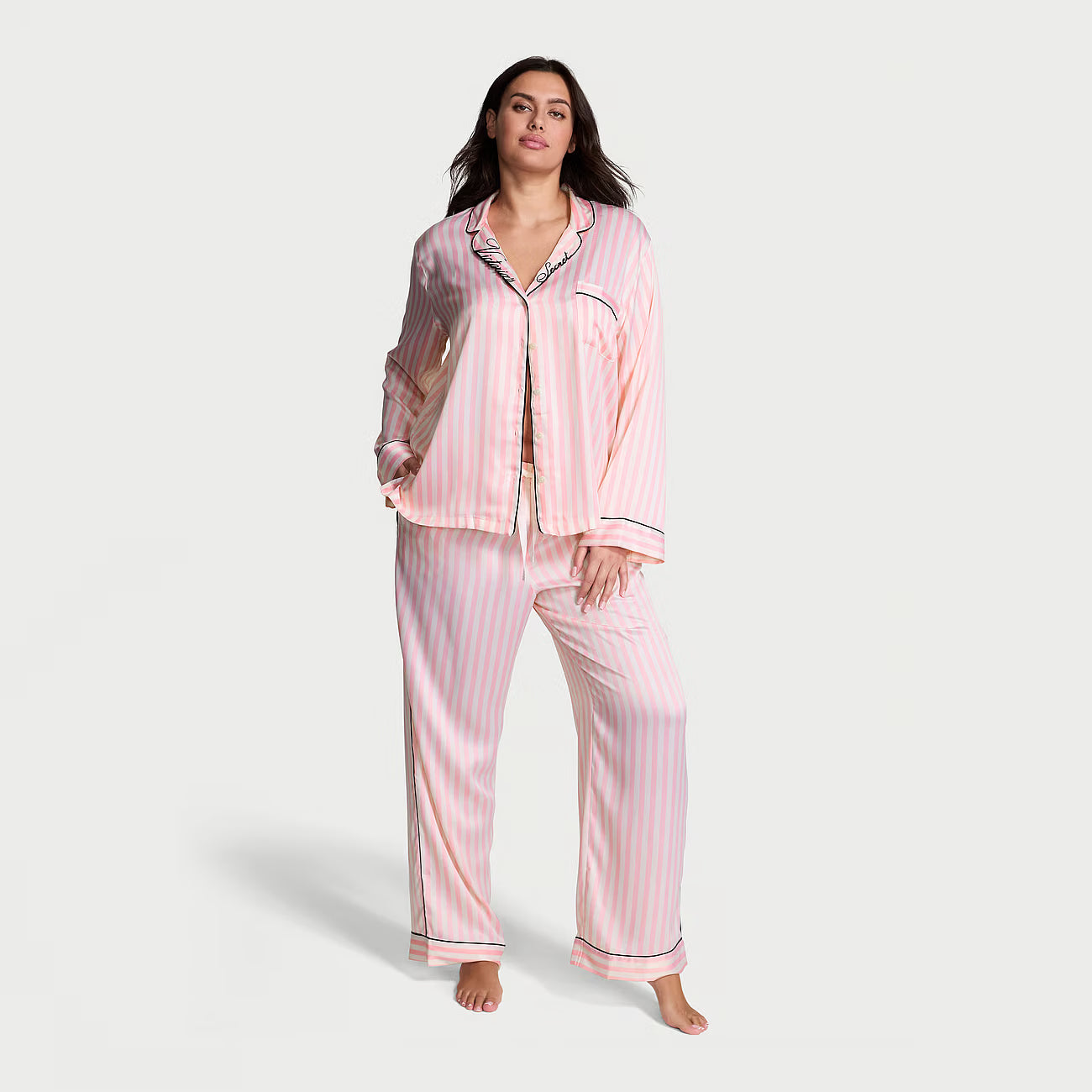 Conjunto de pijama largo de satén insignia